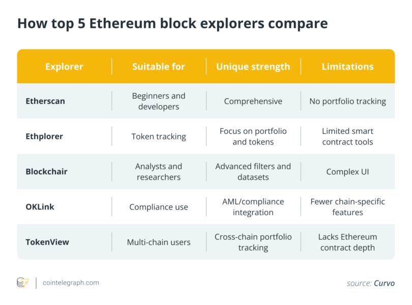 • As Ethereum continues to scale, block explorers have become essential tools for users tracking ETH, tokens, NFTs and smart contracts.