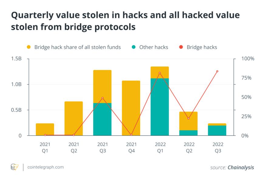 Just over a month later, on March 23, 2022, the Ronin Network bridge — Axie Infinity’s Ethereum-based sidechain — was hacked for over $620 million, and on Aug. 2, the Nomad bridge was hacked for over $190 million. In total, over $2.5 billion was stolen from cross-chain bridges between 2020 and 2022.