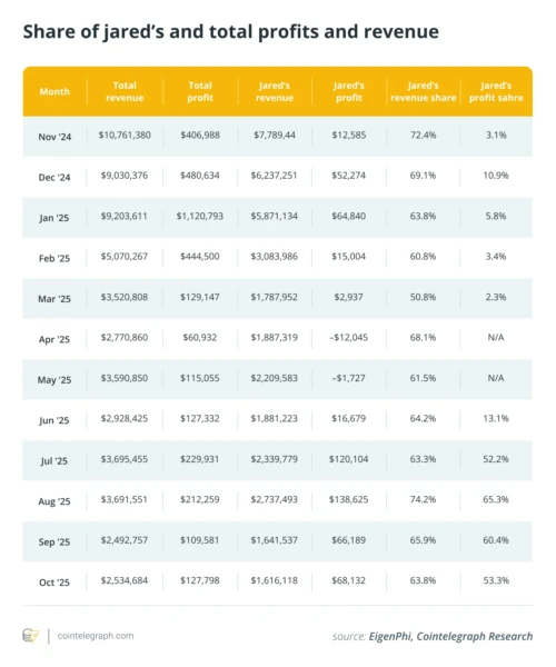 In this article, Cointelegraph Research provides insights into sandwiching activity from November 2024 to October 2025, based on a data set of more than 95,000 sandwich attacks exclusively provided by the data platform EigenPhi.
