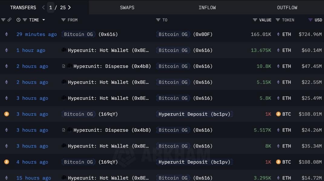 A Bitcoin whale worth over $11 billion sold another $215 million worth of Bitcoin BTCUSD to buy $216 million worth of spot Ether