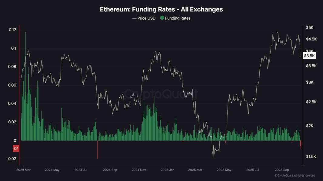 Funding rates across exchanges have plunged into negative territory, the lowest since late 2024, as traders rushed to unwind long positions. This reset indicates fear and liquidation pressure, but could also hint at a potential bottom if the bearish sentiment continues while the price stabilizes. Historically, negative funding rates during deep pullbacks have preceded short-term recoveries once selling momentum fades.