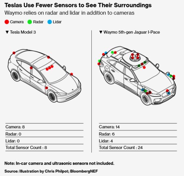 Tesla, however, uses a vision-only approach. Musk argues that human drivers use only vision, so cars should too.