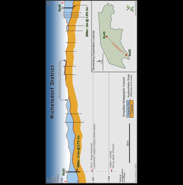 ·      Prior to closure in the 1950's, the Richelsdorf mines produced 416,500 t of copper and 33.7 Moz of silver from Kupferschiefer type deposits. These historic mines consisted of shallow underground workings originally accessed from surface outcrops.