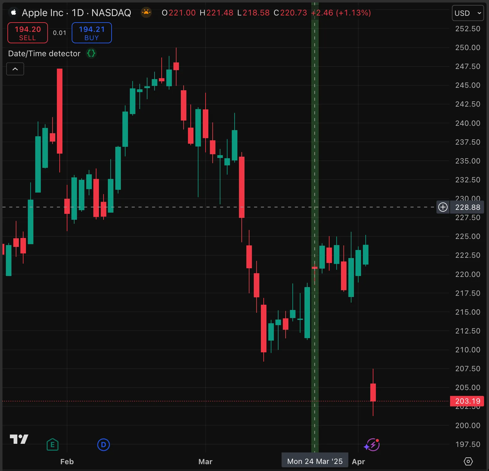 Some symbols trade overnight, which means that today’s trading day actually started yesterday, or even several days ago. Many futures and Forex pairs trade overnight. Trading hours are defined by the exchange. On timeframes of one day and above, the chart visually adjusts the dates of these bars to ensure the date corresponds to the bar’s trading day; on intraday timeframes the date and time are shown as they are.