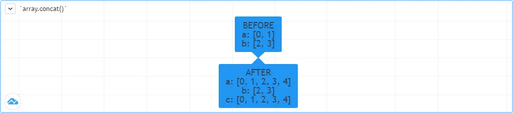 Two arrays can be merged---or concatenated---using array.concat(). When arrays are concatenated, the second array is appended to the end of the first, so the first array is modified while the second one remains intact. The function returns the array id of the first array: