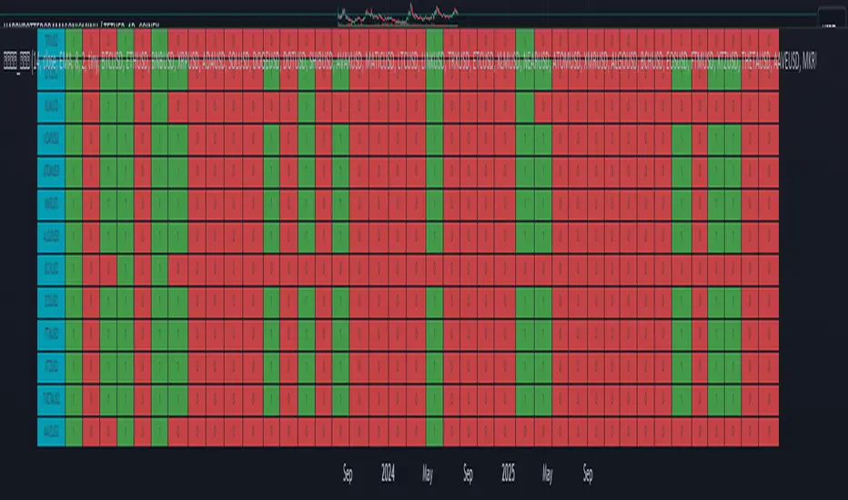 Red: Indicates a 0, meaning the row asset's RSI MA is not higher or is 50 or below. - Purpose and Use: