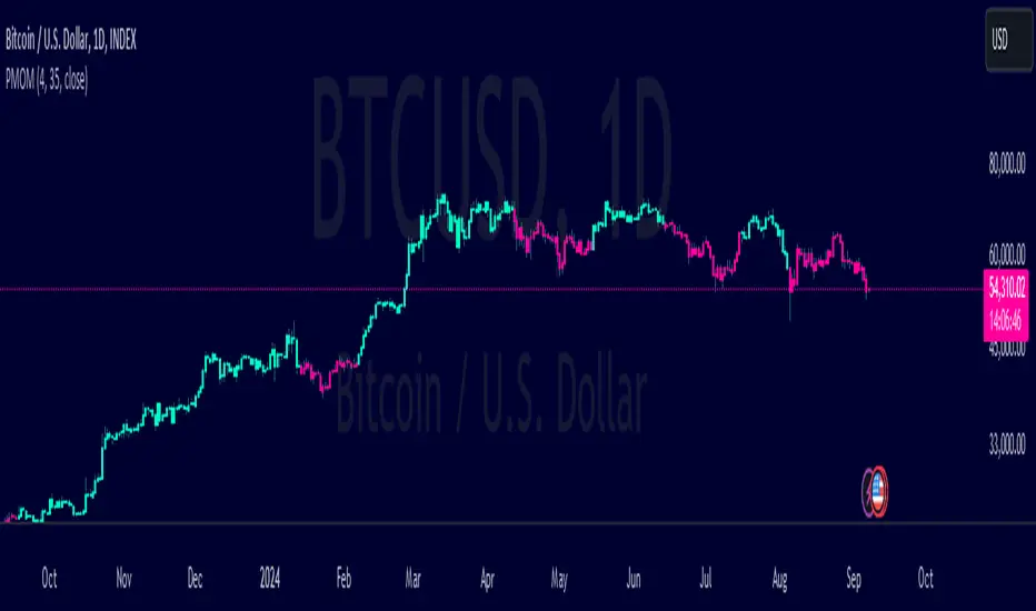 This indicator combines momentum and percentile-based logic to identify potential reversal points and market trends. The momentum is calculated using the Rate of Change (ROC), while the 75th and 25th percentiles of a sliding window are used as thresholds for potential buy and sell signals.