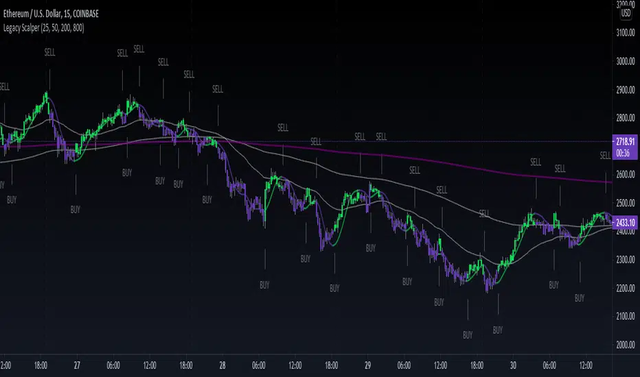 The Legacy Scalper plots 3 main EMA's listed as following:
