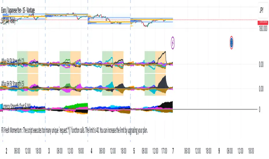 FX Fresh Momentum calculates the true strength and session momentum of the 8 major currencies using a 7-pair average and session resets (Tokyo, London, New York).