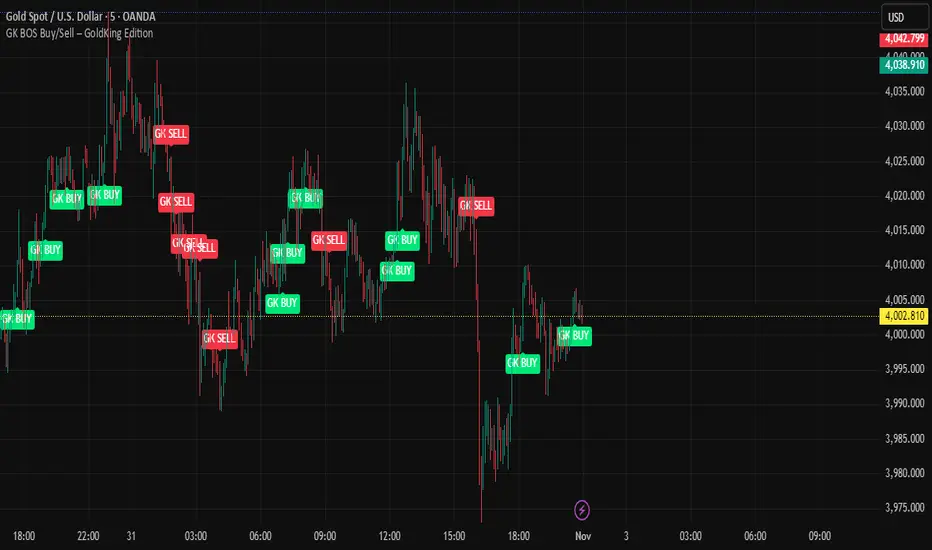 printing GK BUY when bullish break occurs and GK SELL when a bearish break is confirmed.