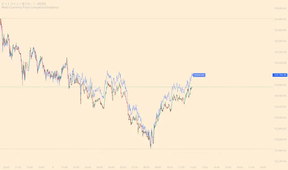 A comprehensive Pine Script indicator that displays multiple cryptocurrency prices in different currencies (USD, JPY, KRW) on a single chart. Perfect for traders who want to compare how their base asset performs across different markets and currencies.