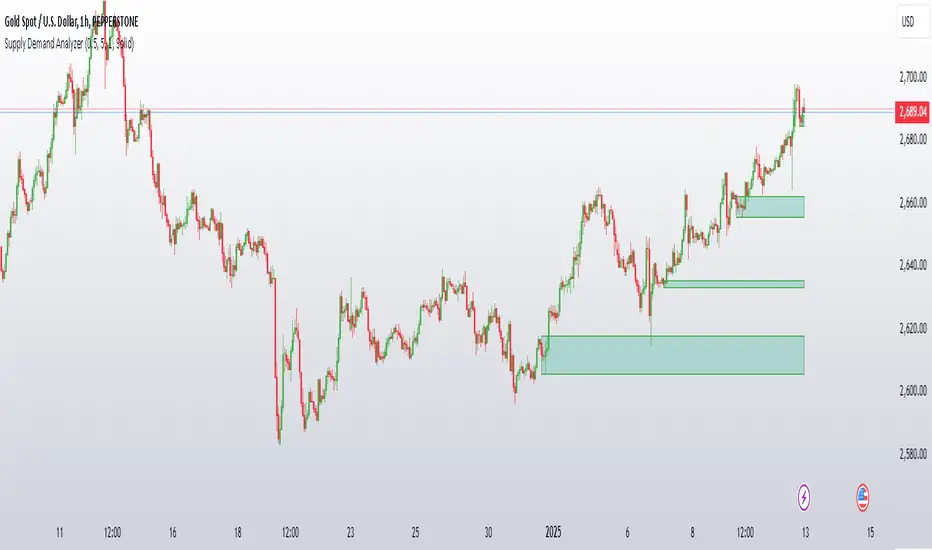 Supply Demand AnalyzerThe Supply Demand Analyzer is an advanced trading tool designed to identify key Supply and Demand Zones with precision. It simplifies market analysis by highlighting critical price levels where buying and selling pressures create potential reversal or continuation opportunities.