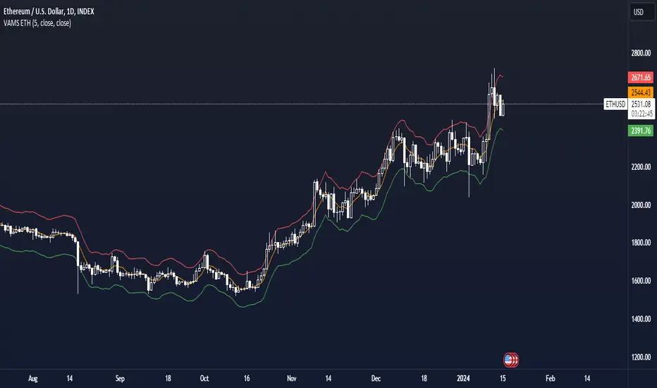 The VAMS ETH indicator is a technical analysis tool designed for Ethereum that aims to provide traders with insights into potential price momentum based on volatility-adjusted price ranges. This indicator is especially useful for identifying periods where the price is likely to experience significant movements away from a defined mean price level.