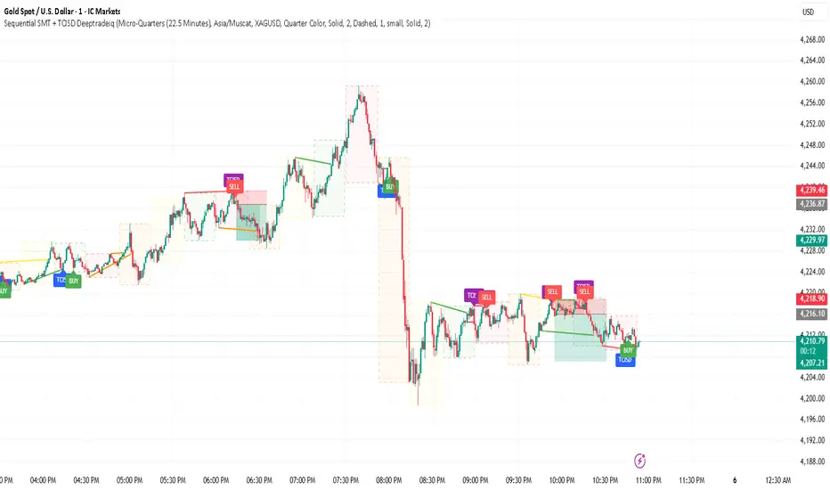 An educational tool designed for studying Quarterly Theory Sequential concepts and temporal price analysis. This indicator visualizes divergence patterns between correlated instruments and tracks time-based price structures for analytical and learning purposes.