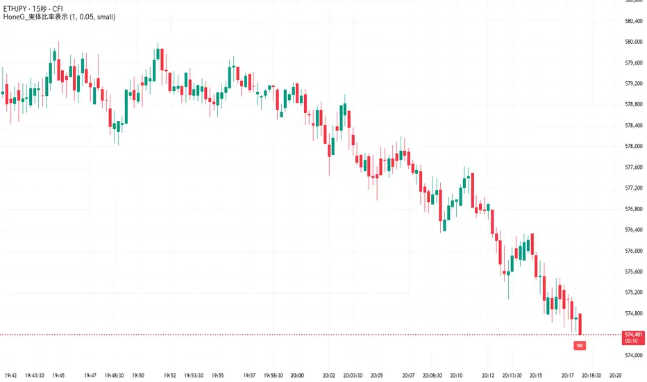 最新のローソク足にリアルタイム実体比率を表示する補助ツールです。