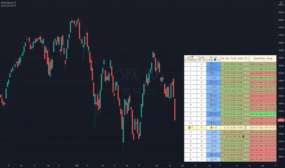 - 🆕 Add Expected Value column. Get the historical expected value of a given trading day. Including the mean bullish and bearish move for a given day. Cells are highlighted from highest EV day to lowest.
