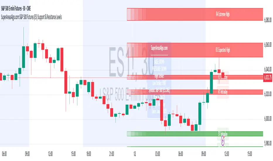 SuperAreasAlgo.com S&P Futures (ES) Support & Resistance Levels