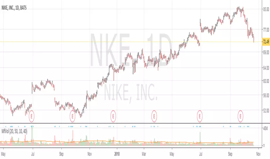 On top of the configurable daily and weekly MA length, a dot is displayed for volume x% > current MA length. This is to indicate institutional buying when volume is above certain %.