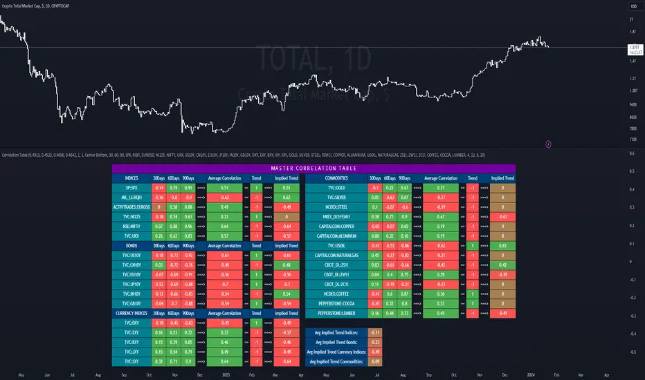 - Strong/Weak: Assets that don't belong to previous kind and all commodities, these are filtered based on their current correlation strength, if their strength is weaker than the average they are not included in the Average Implied Trend calculation.