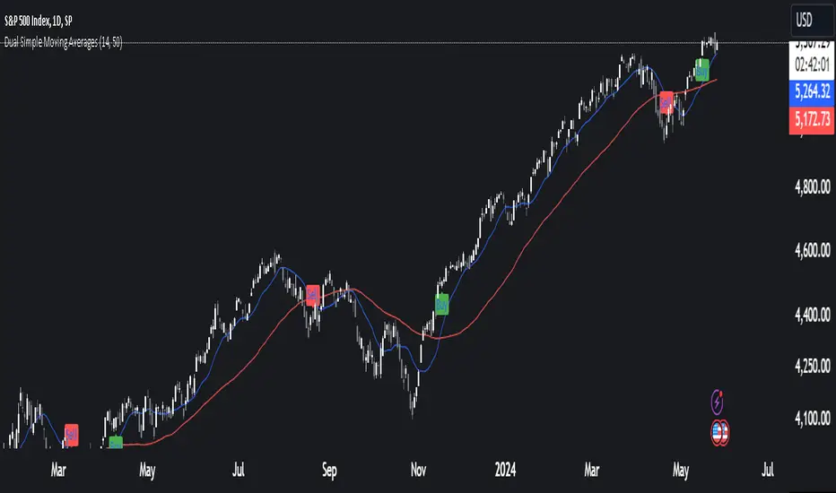 The "Dual Simple Moving Average with Price Condition" indicator is a powerful tool designed to help traders identify potential buy and sell opportunities by analyzing the relationship between two Simple Moving Averages (SMAs) and the price action.