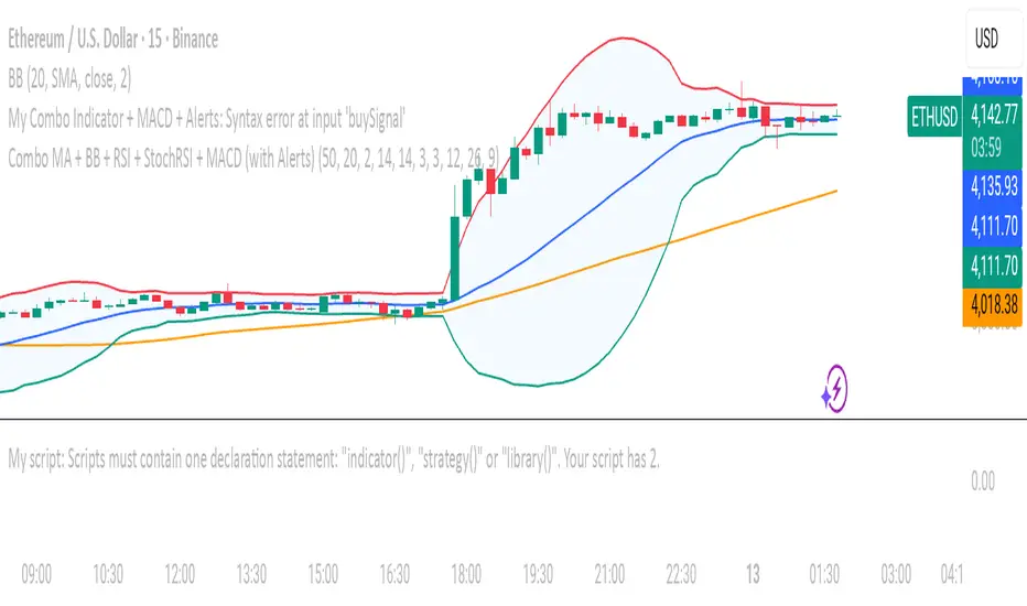 BEST STRATEGY AT SUPPORTS “This indicator combines Bollinger Bands, RSI, Stochastic RSI, MACD, and a Moving Average to identify potential buy/sell points. It also includes alert conditions for trade signals.”