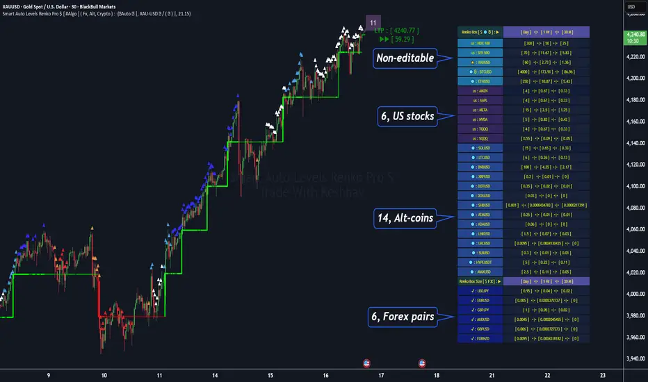 Smart Auto Levels Renko Pro $ [ #Algo ] ( Fx, Alt, Crypto ) :