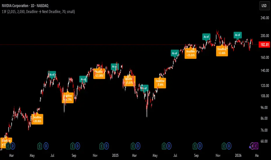 This indicator maps the SEC Form 13F reporting cycle onto any stock and measures how price performs across the structural disclosure windows created by regulatory timing.