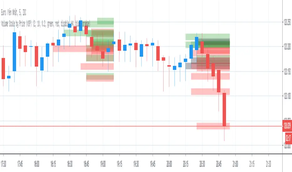 Volume Scale by Price (VSP) show volume of bar in y-axis (price-axis) with options below: