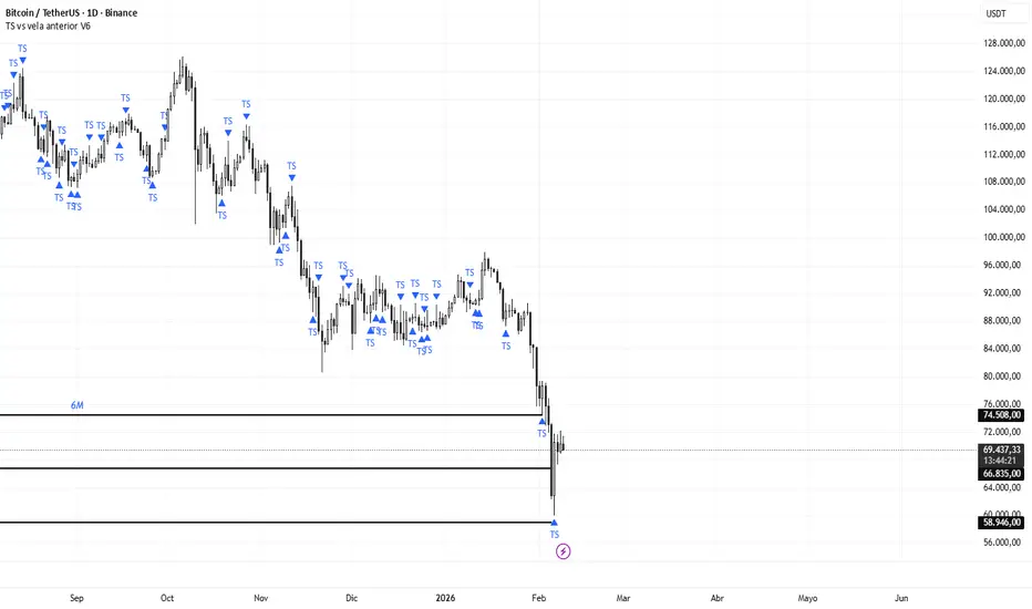 This indicator highlights **Turtle Soup (TS)** setups by comparing **the current candle to the previous one**—and it only triggers **once the candle is fully closed**, so it doesn’t “paint and disappear” while the bar is still forming.