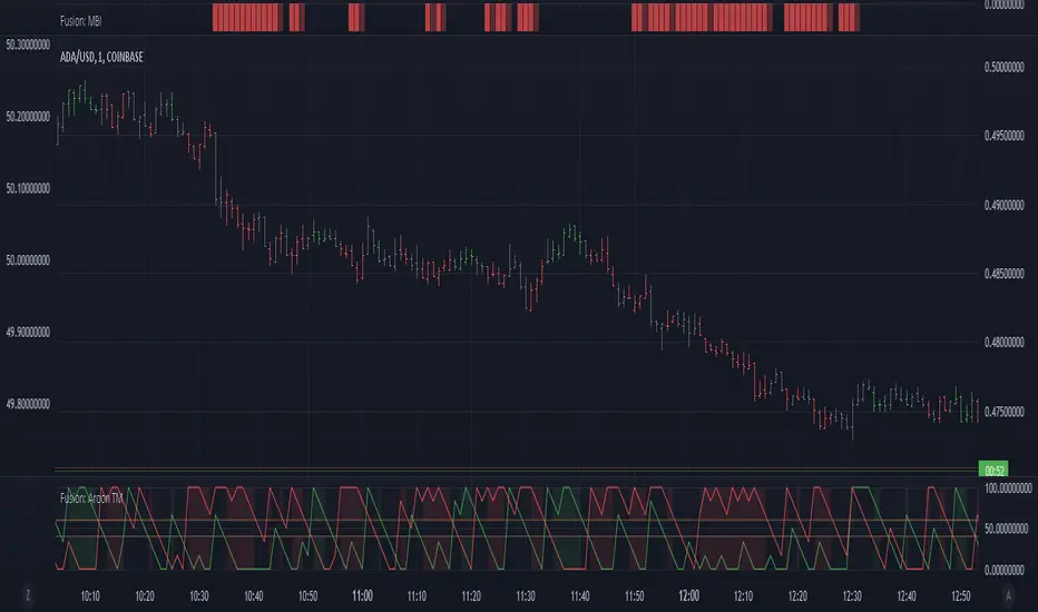 Additionally it defaults to the normal colors we are familar with for up and down (long/short) but you can choose Aroon colors if you wish with just a checkbox.