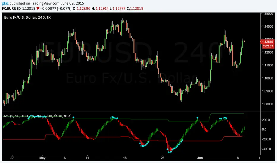 OB/OS zones are at 200 and -200 and marked with aqua color above below the candles.