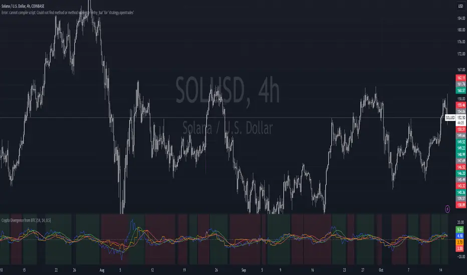 This script is used to indicate when price action of a crypto coin is diverging significantly from that of BTC.