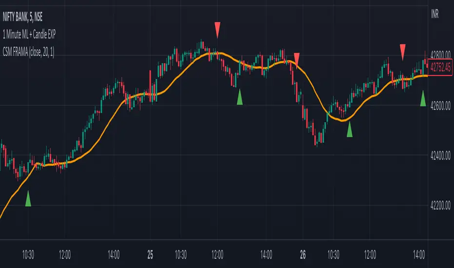 FRAMA (Fractal Adaptive Moving Average) is a technical analysis indicator that adapts its smoothing period according to the market's volatility, allowing it to provide accurate signals in all market conditions. This indicator script plots the FRAMA on a chart and generates buy and sell signals based on the FRAMA and candlestick patterns. It also includes an option to filter signals based on bullish and bearish engulfing patterns.