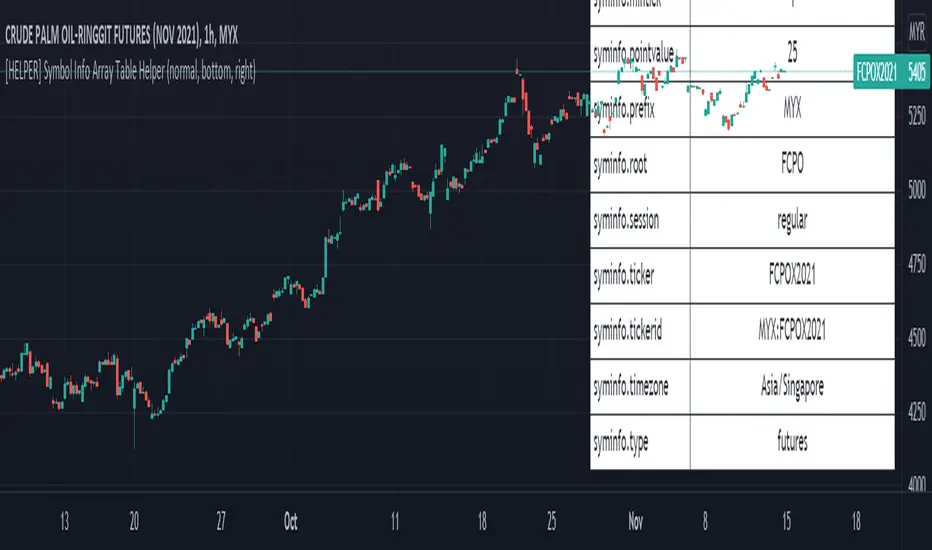 This indicator is to show symbol info in table using built-in syminfo name space, coded in latest Pine Script version 5.