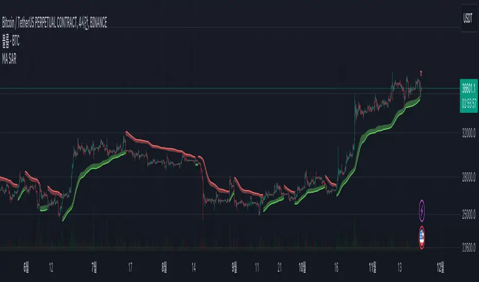 The indicator I present merges the calculation formula of the Parabolic SAR with the Moving Average.