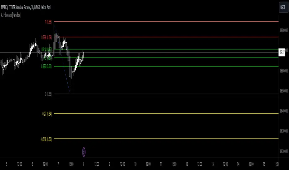The A.I fibonacci is a tool designed to assist traders in identifying potential price levels following a retracement. Unlike many other Fibonacci indicators available, this script is tailored to highlight the most crucial levels for entries, take profits, and stop losses.