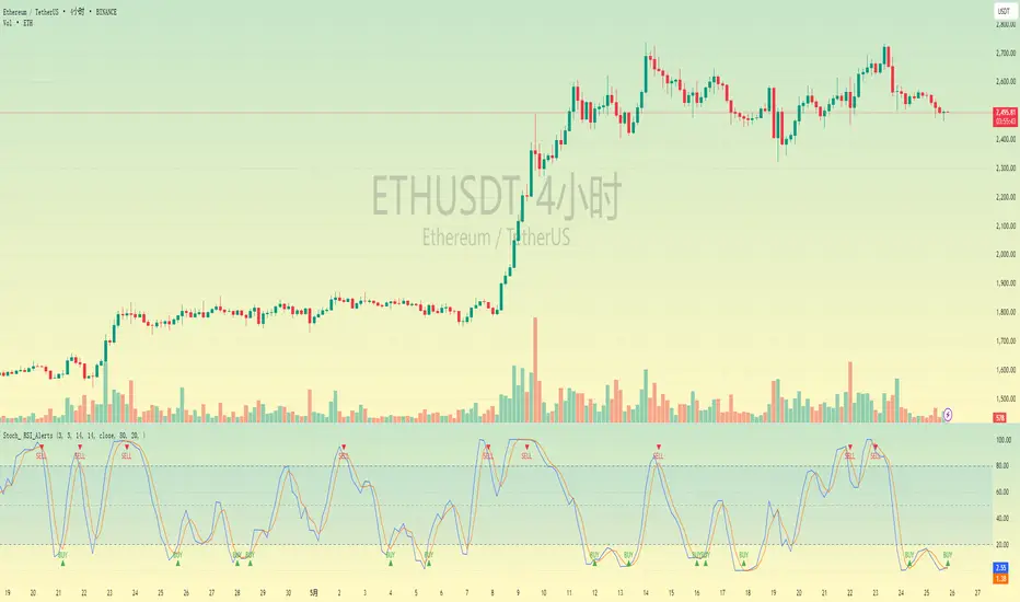 This enhanced Stochastic RSI indicator identifies overbought/oversold conditions with visual signals and customizable alerts. It features: