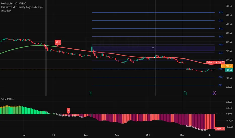 🔴 Red Line + SELL Label: Confirmed Downtrend (Price < EMA 50 + Negative Institutional Volume).