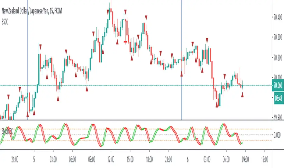 This script works based on everget's version of Ehler Stochastic Cyber Cycle. Unlike everget's work, my adaptation prints only crossovers into the chart that occur above or below the overbought/oversold zone.