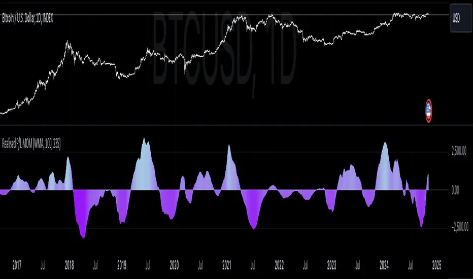 This indicator is designed to track the momentum of net realized profit/loss (P/L) and identify potential market trends based on the behavior of the holders.