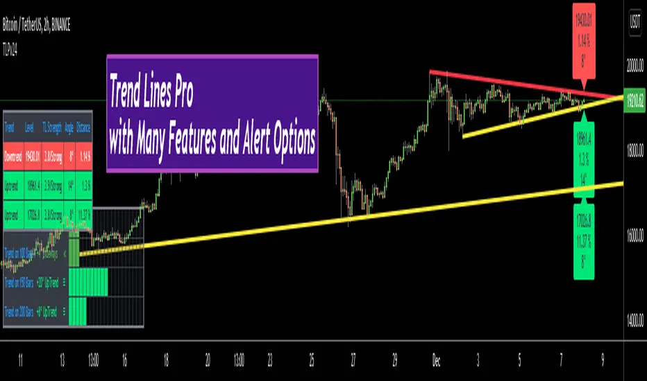 New Updates:- "Show Angle Info" option added. at the moment we can not get angle info in Pine but in this new version the script can calculate/show the angle of the Trend Lines!!