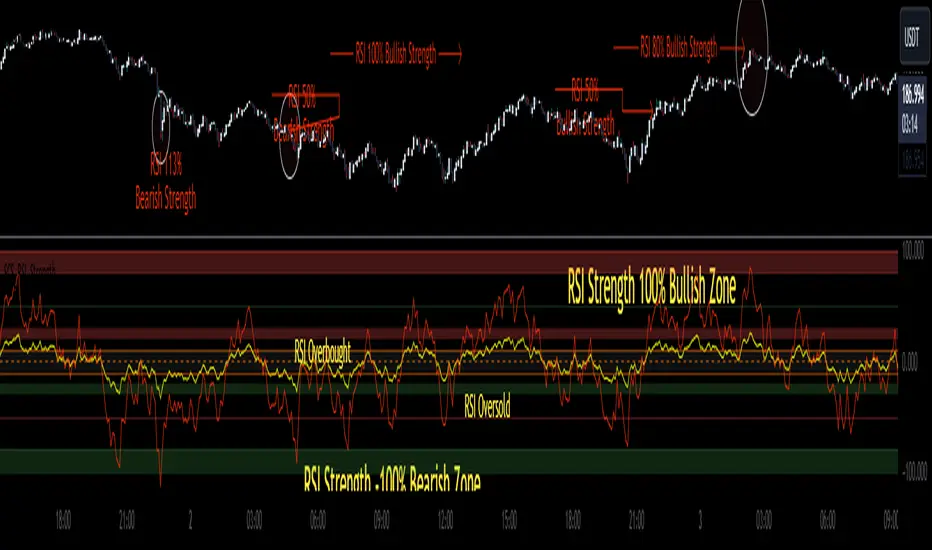 RSI Strength is essentially a modified version of the RSI that calculates the amount of strength actually contained or exerted within its most recent move.