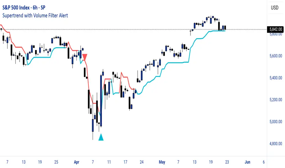 The "Supertrend with Volume Filter Alert" enhances the classic Supertrend indicator by adding a customizable volume filter to improve signal reliability.