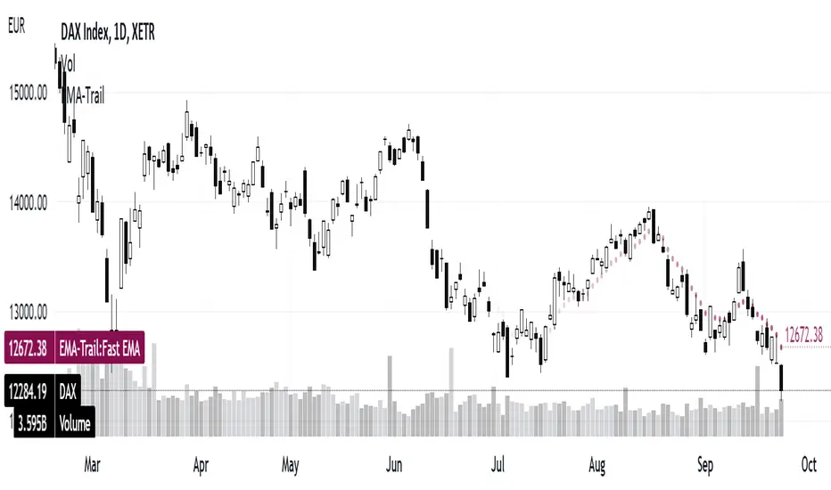 To use the 8-EMA as a trail stop, you can enable labels on the plot or on the price axis.