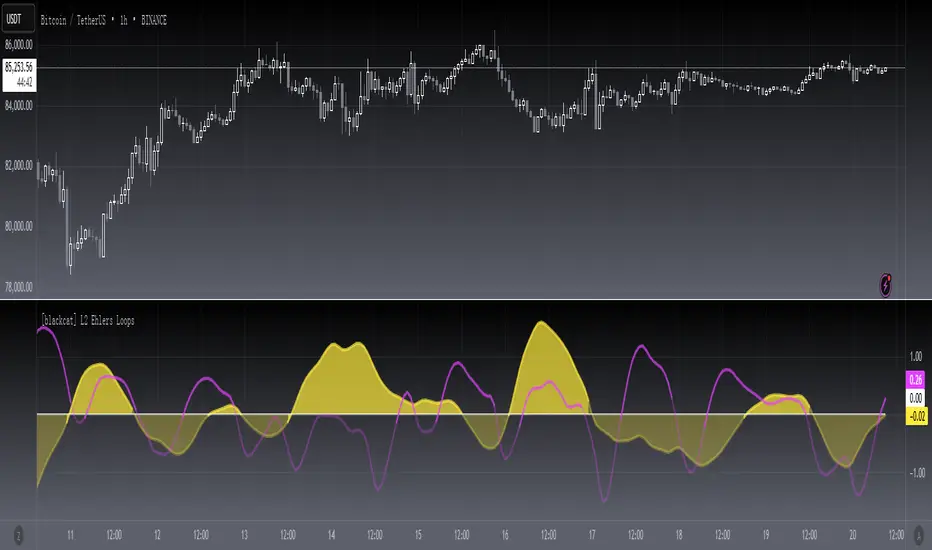 OVERVIEWThe [blackcat] L2 Ehlers Loops indicator is designed to help traders analyze market trends using advanced filtering techniques developed by John F. Ehlers. This script applies high-pass filters and super-smoothing algorithms to both price and volume data, providing insights into underlying market dynamics. By plotting the Root Mean Square (RMS) values, it offers a unique perspective on market movements, making it valuable for identifying trends and potential reversals 📈💹.