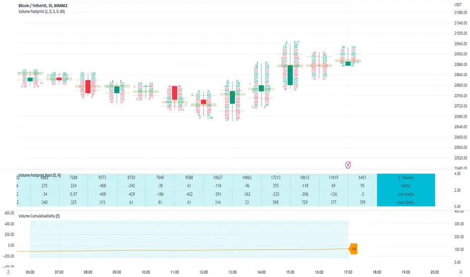 Volume Footprint Statistics - Script showing table with basic statistics about Up and Down Volume inside the candle.