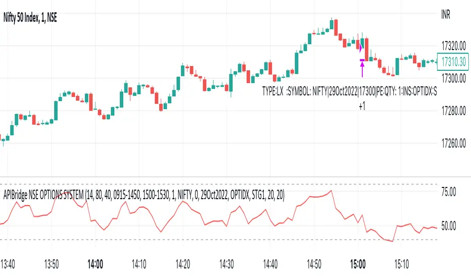 Long Entry: When RSI goes above 80, send LE in an auto-calculated option strike Call. When RSI goes below 20, send LE in auto-calculated option strike Put.