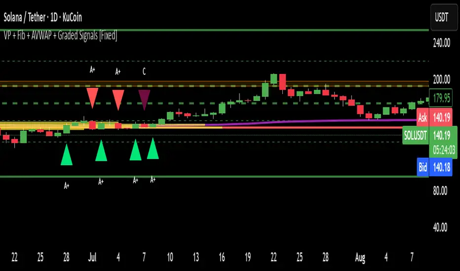 Updated the script with graded buy and sell🟢 A+ Buy (Strongest Long)Logic: Cross UP AVWAP AND Price > POCWhy it's A+: You have momentum (crossing AVWAP) and you are trading above the heaviest volume area. In Volume Profile theory, trading above the POC implies "acceptance" of higher prices. There is little "overhead supply" (bag holders) to resist the move up.Chart Visual: Green Triangle (Lime color).