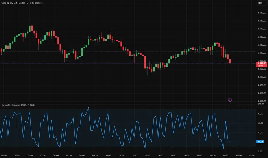 stelaraX – Connors RSI is a short-term momentum oscillator designed to identify overbought and oversold conditions with higher precision than traditional RSI. It combines price momentum, streak behavior, and percentile ranking to capture short-term exhaustion and mean-reversion opportunities.