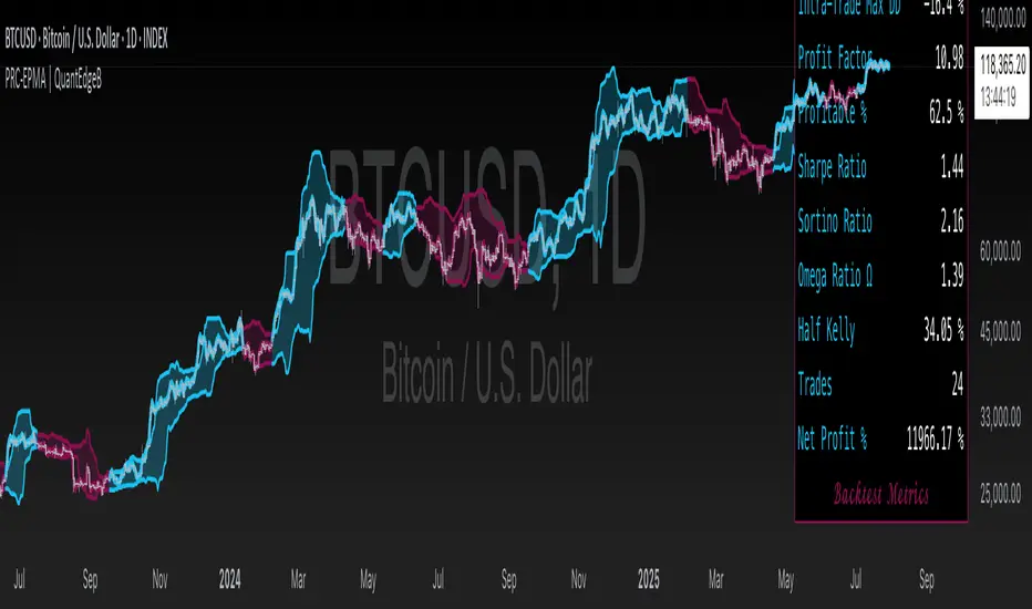 The PRC-EPMA (Percentile-Endpoint Moving Average) is a sophisticated trading indicator developed for traders looking to capitalize on trend shifts with enhanced filtering mechanisms. It blends Endpoint Moving Averages, Percentile Rank, and Median Absolute Deviation (MAD) Filtering to generate high-probability long and short signals.
